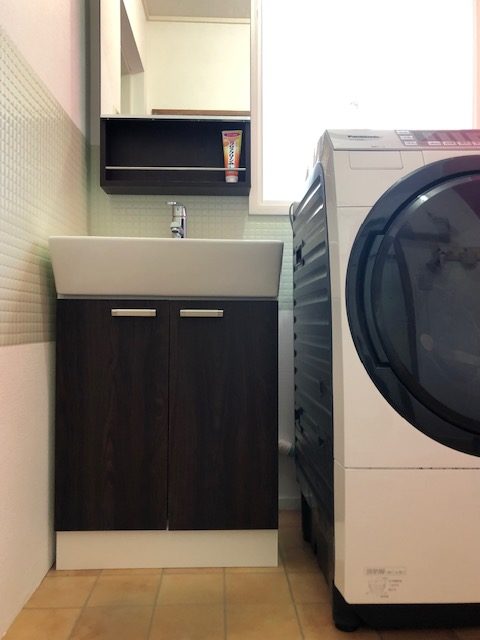 ただでさえ狭い洗面所。引っ越し前から使っているドラム式洗濯機が場所をとるため、洗面台はできるだけ小さいものを探しました。