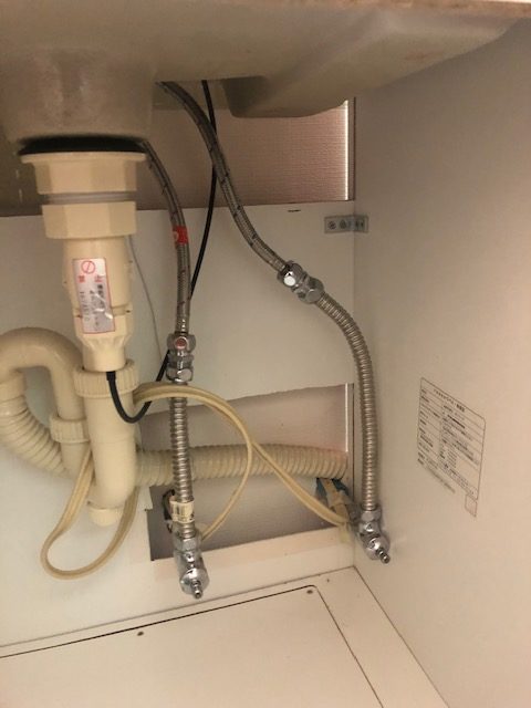 扉を開けるとこんな感じ。給水栓の箇所ですが、見えない場所なので、そんなにきれいに穴を開ける必要もありません。