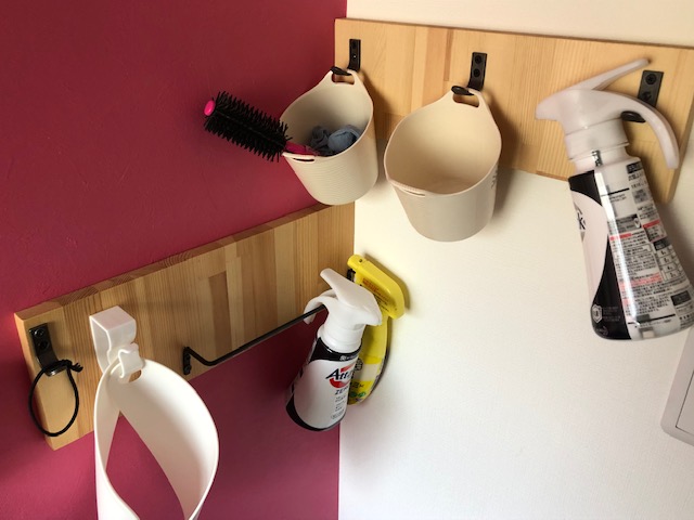 とにかく狭い洗面所ですので、できるだけ省スペースになるように、洗剤置き場も工夫しました。