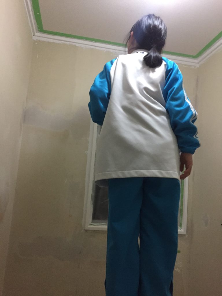 右画像の白い壁紙が耐クラックのSlp-801です。ピンクの壁紙は普通の壁紙なので、所々凸凹です・・・