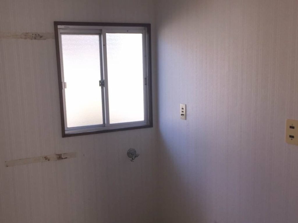 前の壁紙を剥がした洗面所。